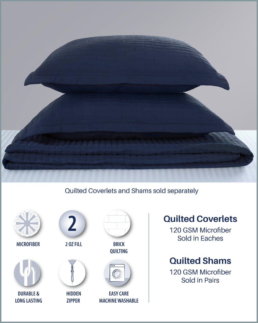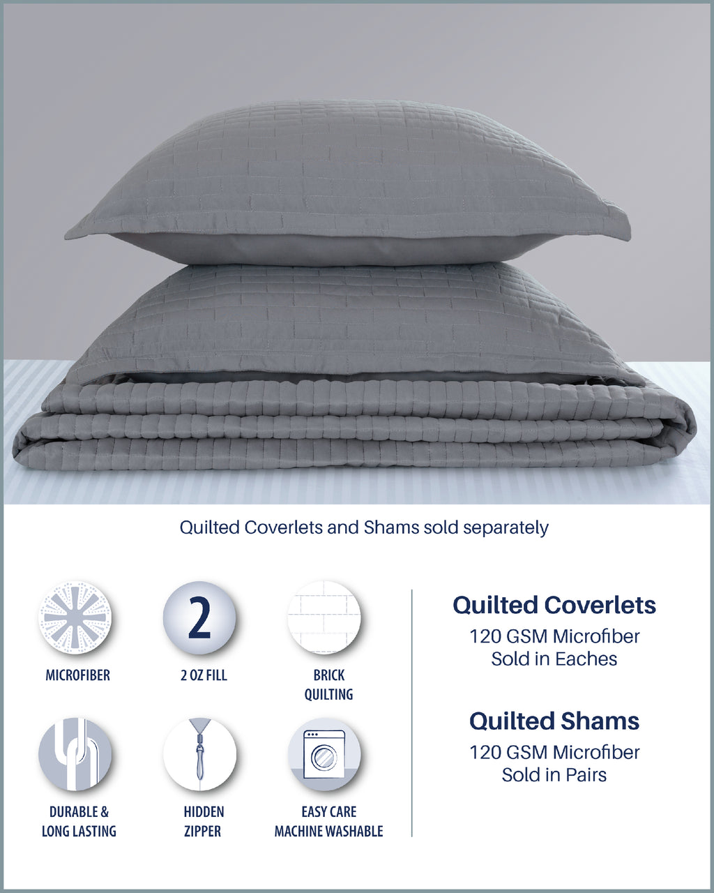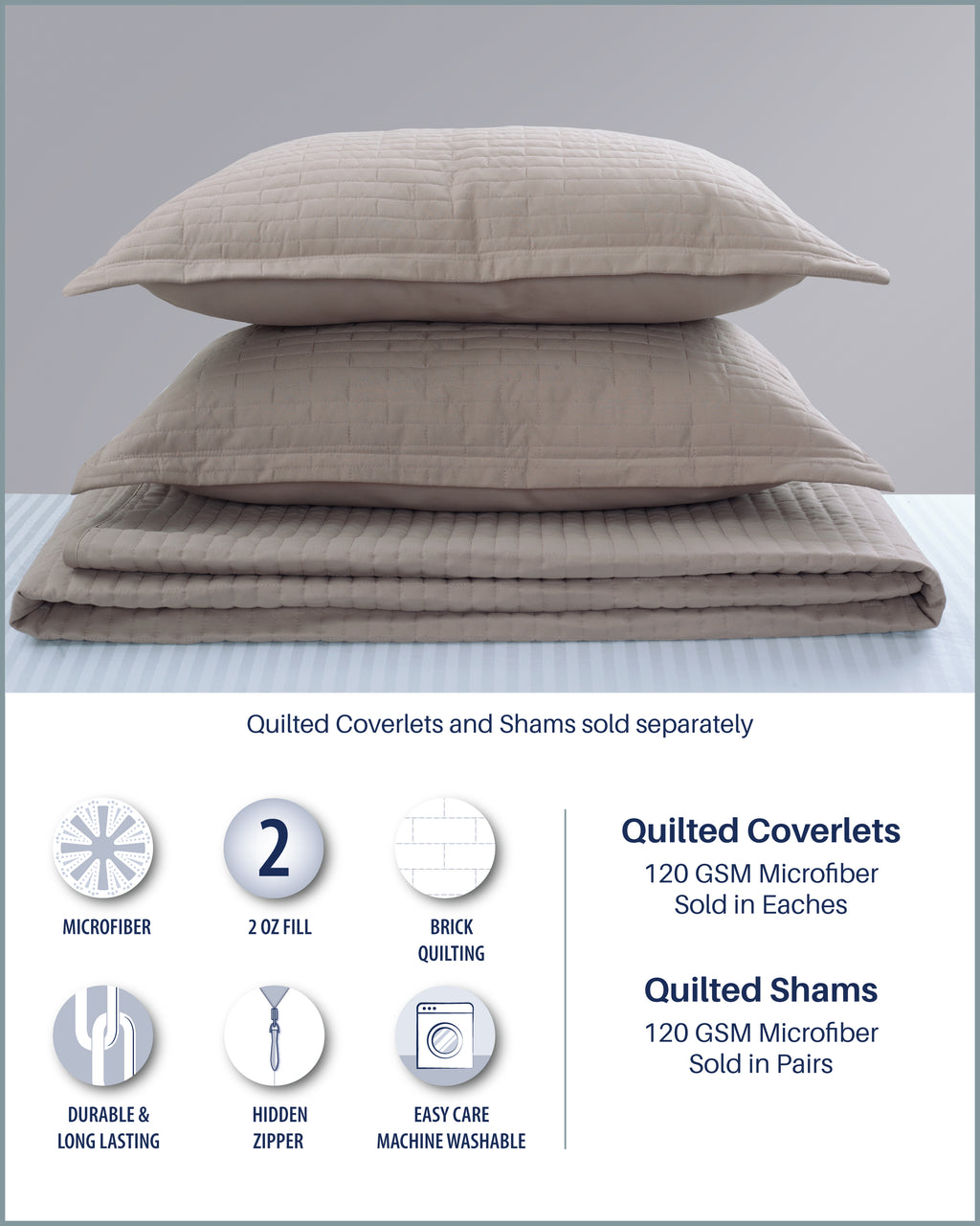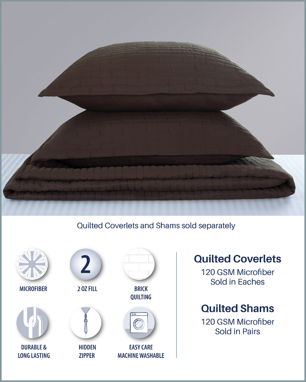 - 120 GSM Premium Microfiber Brick Quilted Coverlet & Shams